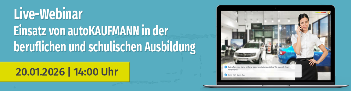 Im Januar findet ein Live-Webinar zu autoKAUFMANN Digital für Ausbilder, Lehrkräfte wie auch Azubis statt.